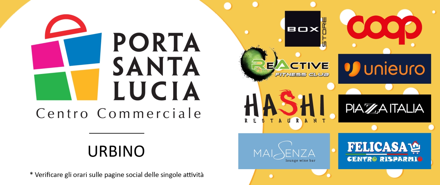 Il Centro Commerciale si trova a Urbino in Viale Antonio Gramsci, presso la Porta di Santa Lucia: una posizione particolarmente favorevole perché rappresenta un punto di accesso privilegiato al centro storico della città. Urbino è una delle più importanti mete del turismo artistico mondiale: nel 1998 è stata dichiarata patrimonio dell’umanità UNESCO. I 10 livelli della struttura si estendono lungo un versante della collina su cui poggia Urbino. Nella parte a valle (Via Di Vittorio) è prevista la realizzazione della nuova stazione delle corriere, futuro nodo di scambio del traffico urbano e interurbano. Un percorso meccanizzato composto da scale mobili, ascensori e tapis roulant collegherà la parte a valle (Via Di Vittorio) con quella a monte (Viale Gramsci).